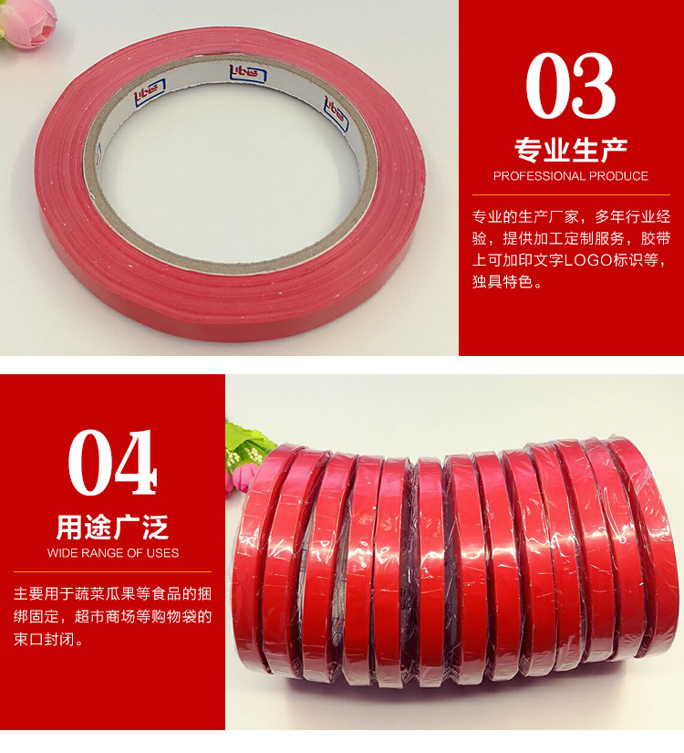 彩色束口胶带_蔬菜捆绑胶带_PVC彩色胶带