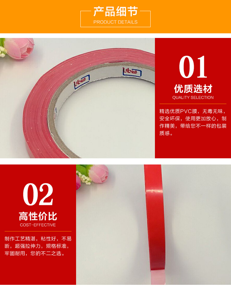 以PVC薄膜为基材,涂以橡胶型亚敏胶制造具,有良好的耐压性,阻烯性。