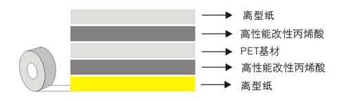 以聚酯薄膜为基材,涂与高性能的压敏胶(丙烯酸胶粘剂或橡胶型胶粘剂)采用高克重,易冲形的离型纸,涂布精度达到±1um。具有优异的粘贴性,性价比高。